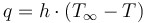 where q^{\prime \prime} is the heat flux, T_wis the wall temperature, and T_\infty is the characteristic fluid temperature.