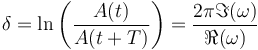 where A(t) is a time-varying response and ω is the complex eigenfrequency of the system. T is the time period given by T = \frac{2\pi}{\Re(\omega)}.