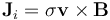 where \sigma is the material conductivity and \mathbf{v} is the velocity of the conductor. Due to the effects of magnetic induction, there will be an additional current density contribution stemming from induced fields