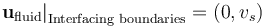 On the fluid boundaries interfacing the sphere, the fluid velocity is given by