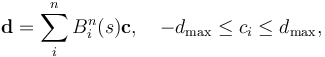 where d_\mathrm{max} is the maximum displacement, B_i^n is the i‘th Bernstein polynomial of n‘th order, while 0\leq s \leq 1 is the COMSOL s parameter.