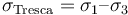 The two most commonly used scalar stress measures are the von Mises equivalent stress and the Tresca equivalent stress. If we express them in terms of the principal stresses (\sigma_1 > \sigma_2 > \sigma_3), then