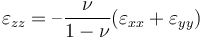 \sigma_z &=&\frac{E}{1+\nu} \left ( \varepsilon_{zz} +\frac{\nu}{1-2 \nu} \left ( \varepsilon_{xx} + \varepsilon_{yy} + \varepsilon_{zz} \right )\right ) \\