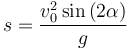 where v0 and α are the velocity and angle at the time of projectile release, respectively, and g is the gravitational acceleration.
