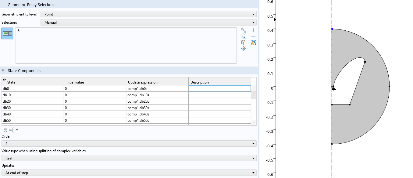 I tried to implement it. but it increased the solution time quiet a lot unless I select one point as geometric entity. Unfortunately I can not evaluate the state variables. When i try to evaluate a variable under derived variables, I says the variable is undefined.