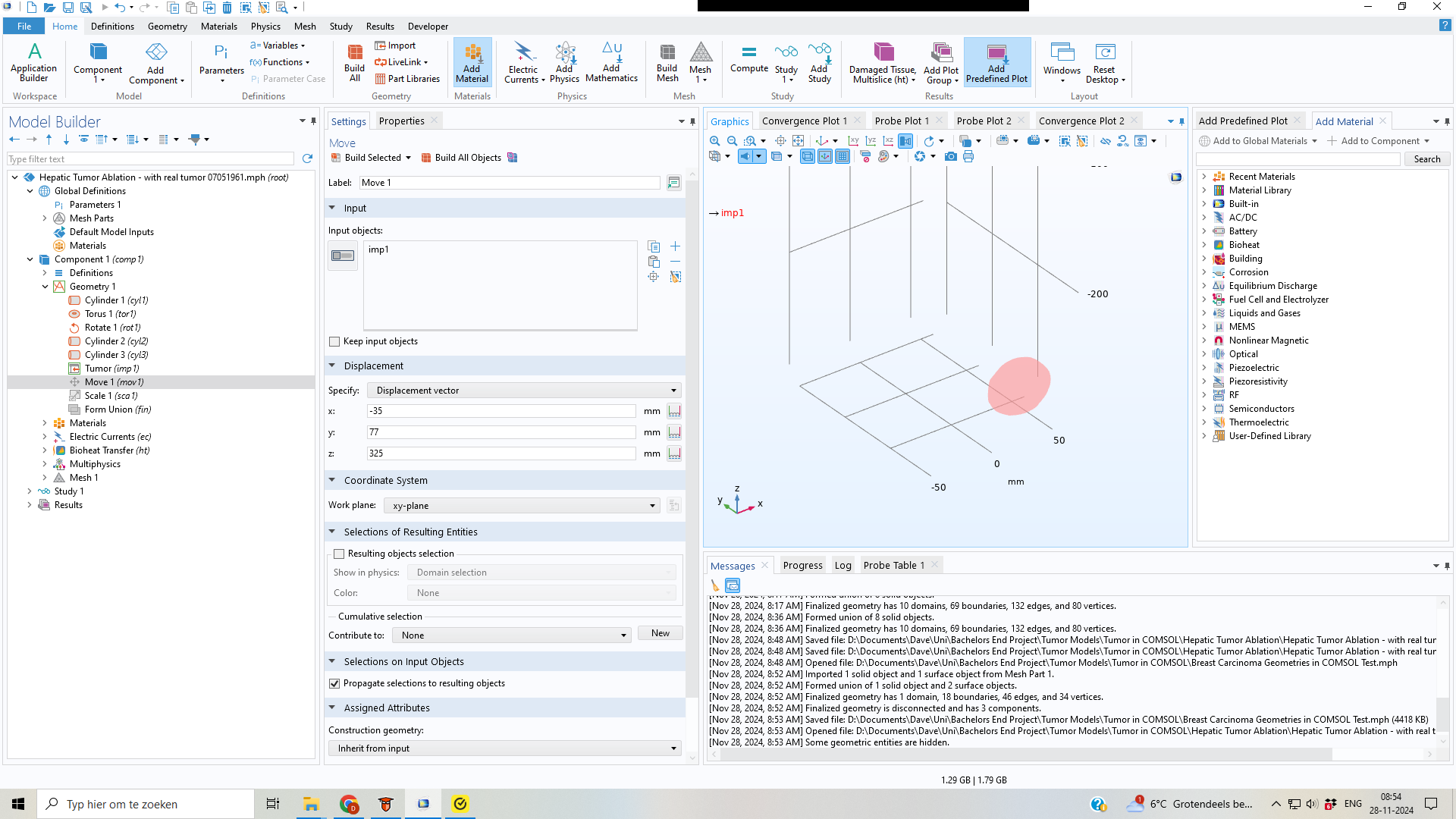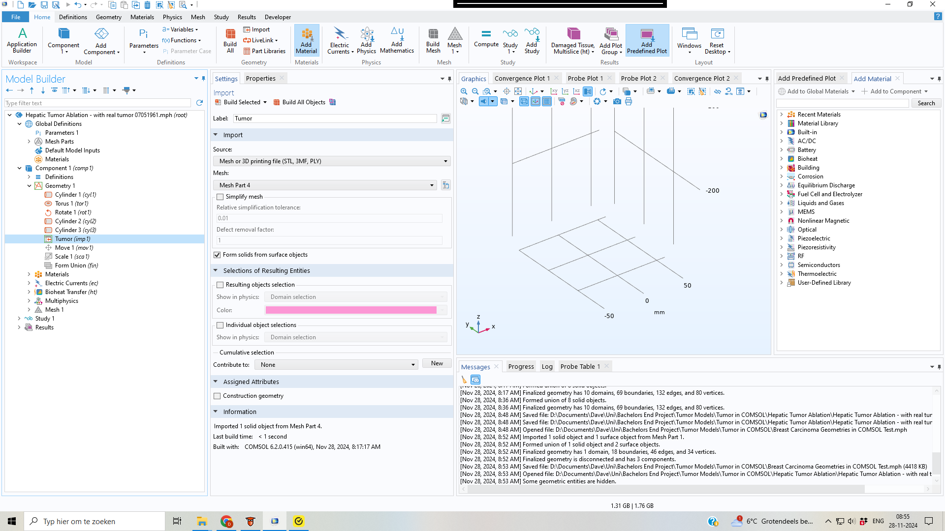 In a project of mine I want to import a 3D geometry. After I import the file in COMSOL I get the mesh and everything. However the geometry is not visible in the view-field. I can select the part but just not see it throughout the project or in the results I get (it does seem to have effect on the results and thus is interacting with the model). I have attached a screenshot of the situation. Any help would be much appreciated.