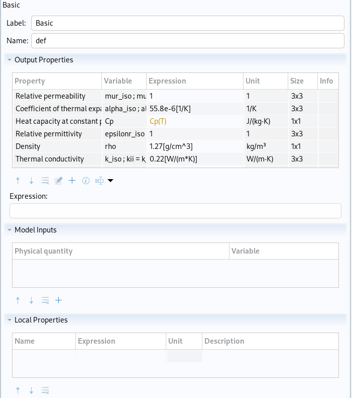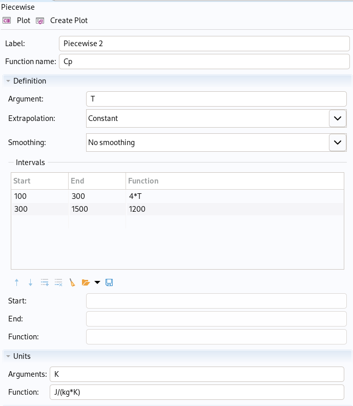 I'm testing incorporating variable material properties into my model with a piecewise function but am getting errors when I try to run it. Is this the correct syntax? When changing the material property to the function argument it goes yellow.
