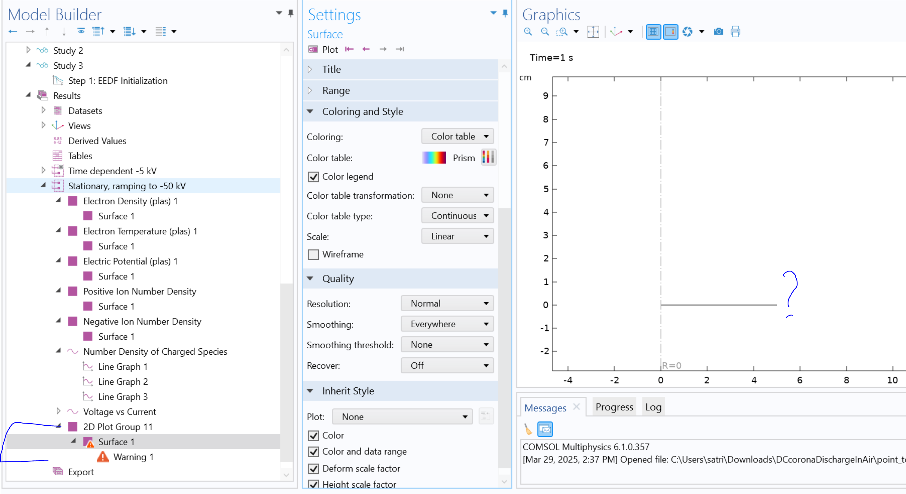 Hello I am trying to understand this tutorial https://www.comsol.com/model/dc-corona-discharge-in-air-in-a-point-to-plane-configuration-100451 I want to change the wall boundary condition to just absorb the electrons and i want to plot it on the wall. I am not able to do so. can you please tell me why. My objective is to determine how much charge got deposited on the wall during the simulation