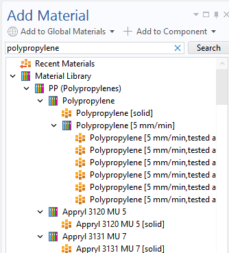 Hello, I am looking for polypropylene in the material library but can not find it. How to have it ? Thanks