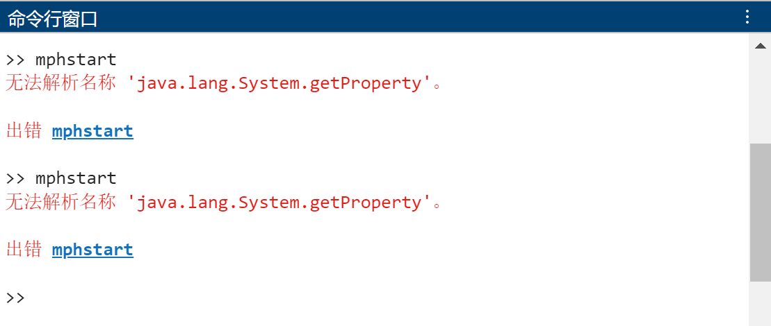 COMSOL with matlab, mphstart error:无法解析名称 'java.lang.System.getProperty'