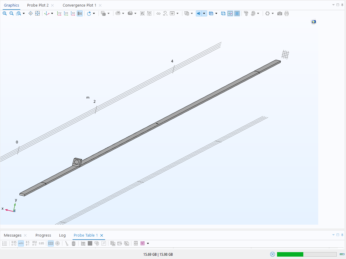 I’m currently running a Lamb wave simulation in a plate using COMSOL Multiphysics. The original model length was 50 cm, and it used to take roughly 1 day to complete on a system with 32 GB RAM. I recently increased the model size to 550 cm and upgraded my system to 96 GB RAM, expecting improved performance.