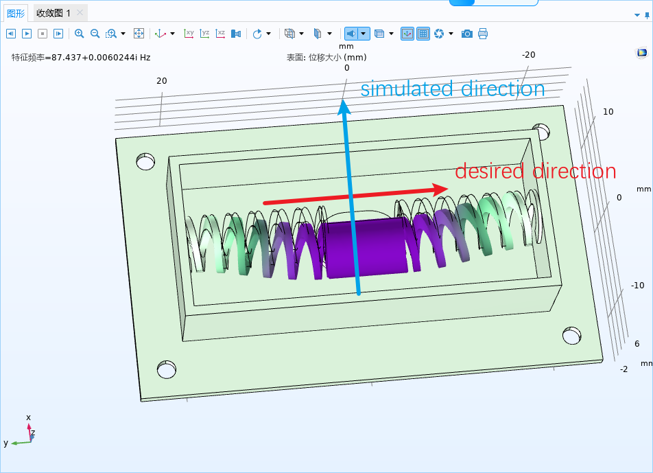 Hi everyone, I am simulating a haptic motor (vibrator) mechanism. The setup consists of a magnet held between two springs, with a coil positioned at the bottom.