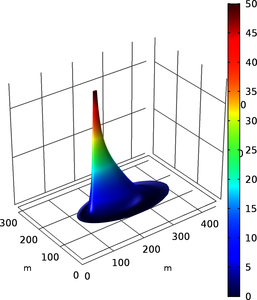 The analysis is conducted by modeling steady-state fluid flow and following up with a transient solute transport simulation. Furthermore, an adaptive mesh refinement solver is used together with the stationary solver with the resulting mesh perfectly adjusted for calculating the transient transport equation.