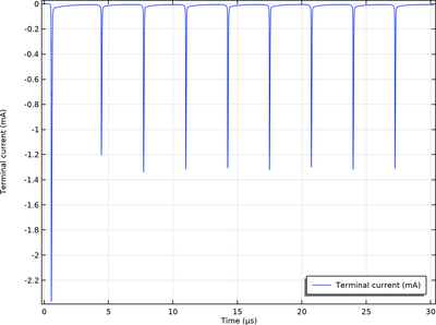 This example simulates Trichel pulses produced by negative corona discharge under a point-to-plate configuration. The electron density and the electric field are obtained, as well as the discharge current. The discharge current clearly shows the pulsating characters. Each current pulse has a rise time of about 40 ns and a decay time of about 150 ns.