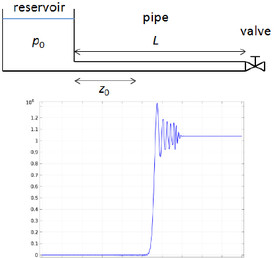 When a valve is closed rapidly in a pipe network it gives rise to a hydraulic transient known as a water hammer. The propagation of these hydraulic transients can in extreme cases cause failures of pipe systems caused by overpressures. This is a model of a simple verification pipe system consisting of a reservoir, a pipe, and a valve. The valve is in this model closed instantaneously.