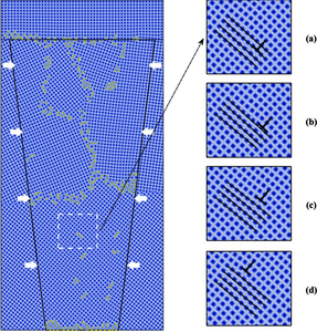 随着电子器件尺寸持续缩小接近物理极限,摩尔定律正面临巨大挑战,半导体制造业开始过渡到“超越摩尔”的三维集成时代。铜硅通孔是实现三维集成的关键技术之一,该技术通过铜硅通孔将多个芯片堆叠互连。然而,实际使用铜硅通孔互连芯片存在着可靠性问题,例如铜硅通孔的凸起。这个现象是由于铜与硅之间热膨胀系数的差异较大,因此在器件服役过程中会产生显著的热应力,造成铜硅通孔的凸起,严重地影响到器件的功能和完整性。为研究铜硅通孔凸起的机理,本文采用相场晶体法从原子尺度模拟重现硅通孔的凸起过程。在COMSOL Multiphysics基本模块中,使用系数形式将相场晶体模型的高阶非线性偏微分方程进行降阶求解,通过在模型中加入“惩罚项”对铜硅通孔施加载荷,从而实现在原子尺度模拟铜硅通孔在外加载荷下的力学响应行为。仿真结果表明,硅通孔在外加压缩载荷的作用下产生凸起现象,同时可观察到硅通孔内晶粒的旋转和合并,位错的滑移和攀移运动等现象。模拟研究发现铜的凸起与硅通孔周边载荷的分布以及硅通孔顶端晶粒数目密切相关。当硅通孔顶端所施加的压缩载荷越大,且硅通孔顶端含有更少量晶粒时,引起的凸起会越大。此外,本文还使用扩散蠕变模型来解释铜硅通孔的凸起行为。