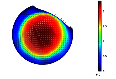 旋动血流是人体中广泛存在的一种正常生理现象,它可以提高壁面剪切力,抑制动脉粥样硬化、内膜增生、血栓粘附等疾病的发生。但是对其产生的原因,一直没有确切的定论。鉴于下肢动脉内壁具有螺旋褶皱,螺旋型支架可以引导旋动流,我们提出一种新型内壁有螺旋褶皱的血管模型。 在COMSOL 中,借助CFD及结构力学模块添加多物理场。对模型进行血流-血管流固耦合仿真,研究血流的流动模式,计算血液流动在心动周期不同时期的血管形变、壁面剪切力、血流速度和流线分布。血流采用不可压缩非牛顿流体,血管使用线性、各向同性线弹性材料。在边界条件方面,入口采用层流流入,速度符合脉动曲线。出口压力符合压力曲线。结果发现螺旋褶皱可以诱导旋动流的产生。另外旋动流可以增加壁面剪应力和变形,还可以减缓支管分叉处的低速涡流区。其次,我们分析了不同褶皱参数对旋动流的影响。增加褶皱的节距和横截面积可以增加螺旋度密度,但是节距的影响大于横截面积;血管变形和平均壁面剪切应力随着横截面积的增加而增加。增加截面直径0.2mm,WSS增加约2mmHg,变形增加约0.2μm;另外血管的变形增强了旋动流螺旋度。这种模型为人工诱导旋动流的产生提供了新的思路,对新型人工血管的制备有重要的指导意义。