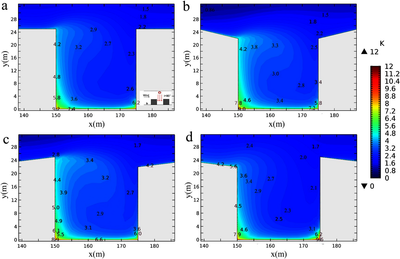 本文以实际生活中常见的4种屋顶形状的建筑为研究对象,使用COMSOL MULTIPHYCIS 5.3a软件构建了一个二维数值模型,模拟了等高上斜屋顶、下斜屋顶、三角形屋顶、平屋顶筑物屋顶形状对街区峡谷高宽比W/H=1的城市街道峡谷流场以及温度分布影响,同时该模型加载了太阳辐射模块,考虑了建筑表面对表面的辐射效应,模拟了不同太阳辐射角下城市街道峡谷的风速以及温度分布.结果表明等高建筑物下,在不同辐射角度下峡谷内温度分布不同,但背风面容易发生热量的累积,而下斜屋顶更有利于城市街道峡谷的扩散,上斜屋顶更加容易导致热量的累积。这可以为城市规划师和设计师提供了一些建议与想法,作为减轻UHI效应的策略.