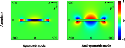 本文利用COMSOL软件仿真了有限宽度的平行黑磷对的等离子体传输及模态分布性质,其中包括它们的光限比和梯度力。首先,设置了两个黑磷层之间的三种不同的相对取向。由于黑磷在光学性质上表现出强烈的各向异性,在三种情况中都发现了对称和反对称模式的存在。对称模式下的电场主要集中在两层黑磷之间,而反对称模式下的电场更多的分散在黑磷对的两侧。结果表明,与反对称模式相比,对称模式表现出更大的光限比和梯度力。更有趣的是,发现zigzag-zigzag结构具有最大的梯度力,而armchair-zigzag结构具有最大的光限比。当两个黑磷层分别沿armchair和zigzag方向时,对称模式的光限比甚至可以达到96%。此外,通过增加了并排结构的讨论,发现也可以支持对称和反对称模式。与反对称模式相比,对称模式下的电场也更加集中。上述结果将有利于纳米级光学操纵和基于黑磷的器件的实现。最后,提出了一种超小型移相器作为黑磷等离子器件的应用。