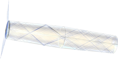 本研究专注于设计一款用于将光线高效耦合至石英棒进行导光的菲涅尔透镜。该透镜核心特点是具备极宽的光谱范围(200nm-1200nm)和超广视场角(165°),可以最大限度地收集和导入光线。研究的难点在于如何在如此宽的光谱和极大的入射角范围内,优化透镜结构以及石英棒尺寸,形状来实现最高的导光效率,所以设计的首要目标是最大化进入石英棒的光通量,并保证石英棒有较高的导光效率。 利用COMSOL的射线光学模块构建了包含菲涅尔透镜和石英棒的完整导光系统模型。通过追踪大量从不同角度入射、不同波长的光线,软件能够精确统计最终被捕获并引导至石英棒的光线比例,从而直接量化透镜的集光性能。仿真结果表明,从小视场角开始一直到165°视场角,所设计的菲涅尔透镜能够成功地将200nm-1200nm光谱范围的光线有效地会聚并导入石英棒内,光线收集率极高。光线踪迹清晰地展示了光线在棒内的传输过程,以波长600nm为例,石英棒的导光效率约为97%。 本仿真研究成功证明,利用COMSOL可以高效设计和评估用于宽广谱、大视场角导光应用的菲涅尔透镜,为开发高性能非成像光学系统(如太阳能聚光器、高效率照明系统)提供了一种有效的设计思路和验证手段。仿真结果为透镜的物理制备提供了关键的性能预测和设计依据。