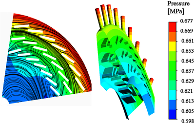 在航空发动机中,涡轮转子的工作条件十分苛刻。涡轮盘是涡轮转子的承力主要部件,长时间工作在高转速、高温、高负荷的恶劣环境下。随着航空发动机整体性能需求的不断提升,在涡轮进口温度(Turbine Inlet Temperature, TIT)将超过2000K,传统的实心高压涡轮盘的设计转速已经达到极限,亟需进行技术突破。Cairo等人最早提出了一种新型的空心涡轮盘,将冷却气体引入涡轮盘内部进行冷却,在减重的同时,进一步突破了涡轮盘的破裂速度(极限)。但是其降低了从压气机进入高压涡轮盘的冷却气体的压力,容易造成燃气倒灌,从而发生危险。肋板可以增加换热面积,具有导向作用,可以减少内部冷气的压力损失。本文针对一种内表面具有导流肋板的空心涡轮盘,使用COMSOL对其导流肋板的排布和形状进行了降低应力水平以及增加出口压力的优化设计,涉及共轭传热、流固耦合以及固体力学等学科,最后得到了合理的肋板设计方案,适应于多权重多决策问题,对航空发动机进一步提高推重比和性能具有很大的意义。
