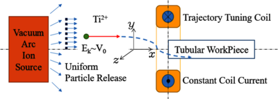 以内表面为主要工作面的管状工件,常因表面磨损、腐蚀等发生早期失效,其表面强化问题在工业应用中具有迫切的需求。真空阴极电弧沉积(VAD)由于工艺温度低,离化率高(60~80%),沉积层致密等优点,是制备表面抗磨损抗腐蚀改性层的重要技术。但对管状工件而言,该技术存在离子衰减问题,即有效沉积的膜层厚度随管件深度出现明显下降,甚至在一定深度管件内表面难沉积。磁场具有使粒子发生拉莫尔回旋、梯度漂移和曲率漂移运动,从而调控粒子轨迹的作用。针对电弧发射的离子(以Ti离子为例),通过COMSOL®的AC/DC模块中的磁场接口仿真辅助线圈的稳态磁场分布,再以磁场分布结果为不变物理场,耦合粒子追踪模块中的带电粒子追踪接口,研究从电弧源发射出的离子在磁场作用下的轨迹,并通过设置管状工件内表面边界条件,研究离子的沉积附着情况。以沉积率、覆盖率为指标,对磁场的作用在不同的算例中进行了讨论。