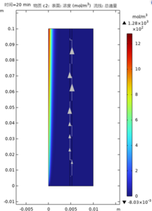 碱性水电解制氢技术是实现大规模绿氢生产的关键路径之一,但其运行过程中的安全性至关重要。一个核心的安全挑战是氢气可能通过隔膜渗透到氧气侧,形成潜在的爆炸性混合物。因此,精确预测和监控氧气中的氢气浓度对于保障电解槽的安全、高效运行具有重大意义。 本研究利用 COMSOL Multiphysics® 软件,建立了一个二维碱性电解槽的多物理场耦合模型,旨在深入探究氧气室中氢气的时空分布规律。该模型耦合了电化学、计算流体动力学(CFD)以及稀物质传递等多个物理场接口。我们通过该模型模拟了电解槽从启动到稳态运行的全过程,并系统性地研究了关键操作参数,包括温度(350-370 K)、压力(1.4-1.8 MPa)、电解液入口流速(0.015-0.025 m/s)、电压(1.15-1.3 V)和电流(50-80 A)对氧中氢气(H2/O2)比例的影响。此外,我们借助 COMSOL with MATLAB® 接口实现了仿真的自动化批量运行,为后续与机器学习模型的结合以及构建决策系统提供了海量、高质量的仿真数据集。 参数化扫描分析揭示了不同操作条件对稳态时氧中氢气比例的影响。结果表明,在所考察的参数范围内,温度、压力、流速和电流等操作条件的变化均会对氧中氢浓度产生影响,为优化操作窗口以降低安全风险提供了数据支持。此外,模型还验证了边界探针浓度与电解槽区域平均浓度之间存在良好的线性相关性,这证明了在实验中采用局部探针监测来评估整体气体成分状态的有效性和可靠性。