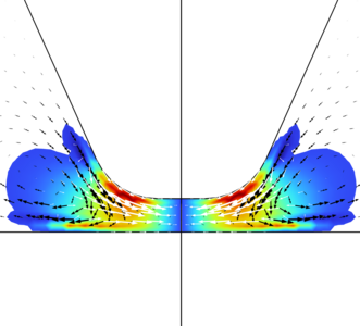 为深入探究材料属性对电弧等离子体热力学特性的影响,本研究以反应烧结碳化硅(RB-SiC)陶瓷为研究对象,基于 COMSOL Multiphysics 建立了耦合电流、磁场、层流及流体传热的磁流体动力学模型,并与304不锈钢进行对比分析。该模型综合考虑了电流、磁场与流场之间的能量转换,以及等离子体对电极与工件的热量传递,能够较为准确地描述电弧等离子体特性。结果表明,相较于304不锈钢,RB-SiC 等离子体具有更高的温度和热通量,但由于其极高的导热系数,工件在击穿后能迅速达到热平衡,且最终温度显著低于不锈钢。同时,RB-SiC 的等离子体最高温度位置不随脉宽变化,长脉宽既不能提升工件温度,也不能推动温度峰值向工件迁移。在力学特性方面,RB-SiC 等离子体因电流密度分布差异承受更大的洛伦兹力,并在工件表面形成更集中的力分布,同时伴随更高的内部压强,从而表现出更强的等离子体稳定性。本研究揭示了碳化硅在电弧加工中的独特等离子体行为,为优化其加工工艺参数提供了理论依据和实验参考。