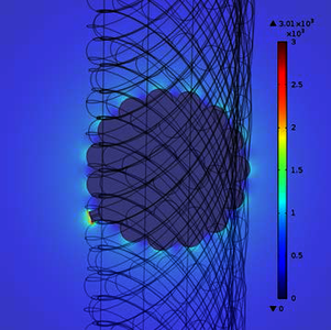 输电线路在生产、安装和运行等过程中由于人为或自然环境可能会形成表面缺陷,产生电晕放电效应,影响线路的正常运行。本文研究了输电线路常见的JL/G1A-240/30-24/7型钢芯铝绞线存在毛刺缺陷时表面电场分布特性。首先利用COMSOL的几何模块中建立圆柱形空气域,画出内部的钢线,长度为1米,再利用螺栓与旋转变换构造出外层绞线,最后构建高度为1mm的圆柱体模拟毛刺。在材料模块中,内部钢芯填充钢,外部绞线填充铝。物理场接口的选择在AC/DC模块找到接地和终端两项,为了将开区域转化成闭区域,将圆柱形空气域表面接地,然后在终端中找到终端类型选择电压项,设置电压63.5V。在网格设置一栏在选择序列类型时选择物理场控制网格,在单元尺寸一栏选择超细化,选择全部构建,最后在研究模块中点击计算。计算结果表明:导线外层绞线表面电场强度较大,在1500kV/左右,而内部的电场强度为零。这与实际情况相符合,因为电场强度的大小与曲率半径有关,曲率半径越小电场强度越大;当存在毛刺缺陷时,由于毛刺会存在尖端,所以最大场强出现在毛刺处,达到3010kV/m,是正常时的两部多。所以需要采取相应的措施减小该处场强。