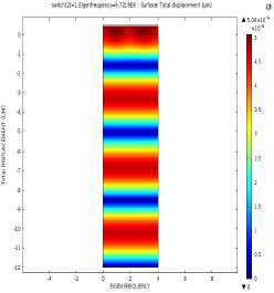 Analysis of SAW sensor is fabricated by COMSOL Multiphysics® 5.0 The use of periodic boundary condition implies that the frequencies of interest will correspond to wavelengths that are integer fractions of the width of the geometry. The lowest SAW Eigen mode has its wavelength equal to the width of the geometry of 3 to 4 μm. Using the Rayleigh wave velocity for the given piezoelectric substrate material, estimation of resonance frequency is the main theme of this work. The information can be used in the Eigen frequency solver, from COMSOL Multiphysics software which will help to find out the resonance frequencies. In this model, a YZ-cut LiNbO3 whose Rayleigh wave velocity (v) is around 3300 m/s. This gives an estimate of the lowest SAW frequency (f0) to be 848MHz and maximum Eigen value obtained is 972 MHz Thus, COMSOL multiphysics results are represented as shown in fig [2] and fig [3] for Eigen frequency Vs Total Displacement with switch mode 1 & switch mode 0 respectively.