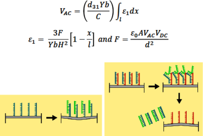 Microarrays are extensively used in modern biology as tools of multiplexed, high throughput analysis to study thousands of genes and their expression inside cells at once [1]. The basic principle of a microarray is quantitative detection of fluorophore tagged DNA. Use of this method results in microarray experiments being expensive and complex due to fragile and costly fluorophores and instrumentation required to analyse them. Previously, MEMS based DNA sensors have been implemented [2,3], though at a small scale, sensing less than 10 DNA sequences. These sensors suffer from poor signal to noise ratio, cantilever to cantilever variation and impractical scaling of sensing techniques. In this report, we analyse and propose solutions to such problems and also propose a novel DNA chip of scale comparable to microarrays that does fluorophore free detection and also design circuitry to directly interface it to a computer, bypassing need of additional analysis instruments (Figure1).