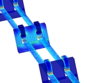 For the design of an inductive power and data transfer electromagnetic calculation are carried out. A transfer system is considered for loads that are distributed across some distances. For example, such loads are adjustable speed drives that are found in factory automation and intra-logistic. Physical properties of the inductive transfer are modeled via COMSOL. Lumped parameters are deduced from magneto static and quasi static calculations. Selected operating conditions are investigated with combined field and network calculations. Field calculations are 2D and 3D and they are carried out for stationary and in the frequency domain. Also heating is modeled at a basic level. Results are compared to experiments that are carried out at a purpose built test stand