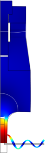 A COMSOL Multiphysics® model was made to design a mechanical amplifier and radiation plate for the emission of high intensity 40.5 kHz ultrasound to air by means of a Langevin type transducer usually applied in cleaning baths for example. In this work, ultrasonic irradiation is aimed at acting on flue gas containing fine particulate matter to realize a shift to higher effective particle sizes as a result of induced particle agglomeration.