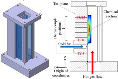 In this work the implementation of an optimization method [1, 2] for inverse heat transfer and for the sensor position correction, such as thermocouples, in COMSOL Multiphysics®and LiveLink™ for MATLAB® is presented. The inverse method is used to determine the unknown boundary condition and for the calculation of the thermal condition of a test plate, which is exposed to hot reactive flows. Further, the positioning of thermocouple is subject to errors. Hence, an additional optimization method is applied to correct the sensor positions.