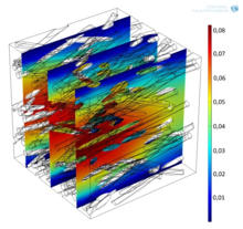 Comprehensive studies of drug transport in nanofibres based mats have been performed to predict drug release kinetics. The paper presents our approach to analyze the impact of fibers arrangement, one of the parameters varied in our parallel experimental studies. COMSOL Multiphysics® has been used to assess the impact of the various purposed arrangements of fibers within the mat. Drug release from nanofibers was modeled by adsorption - desorption and diffusion equation. Our study shows that for the same material porosity drug release from the matrix of regularly oriented fibers is slower than from randomly oriented, isotropic nanofibrous material. Also by decreasing distance between the fibers drug transport rate is reduced.