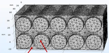 In the fast growing but also highly competitive market of battery-powered power tools short charging times are essential to achieve customer acceptance and to create unique selling propositions. To prevent loss of performance and fast charging capability due to cell aging, the knowledge of proper use conditions in everyday practice is important. At Aalen University, a COMSOL Multiphysics® model of an 18V power tool battery pack was developed to be able to evaluate different application scenarios of practical relevance. Hereby, a special focus was on the interaction of cell performance and cooling system. The simulation comprises battery models of commercial available 21700 cells as well as heat transfer models to highlight the influence of different cooling systems such as phase change materials for latent heat storage. The model allows to quickly assess different operating scenarios and main influencing parameters and thus, to develop new cool down and fast charging strategies adjusted to different cooling systems and areas of application. After high duty use phases, battery packs reach temperatures up to 70°C. To prevent accelerated aging due to high temperatures in the cells in the following charging step, the pack manufacturers have to ensure that the cells in the battery packs cool down to a certain temperature before charging. This cooling step significantly prolongs total charging times. Consequently, reducing these downtimes in between high duty use and charging as well as improving fast charging strategies (which fit the used cooling system) can significantly reduce the total charging time and ageing risk. These improvements are therefore beneficial for customer acceptance (usability) and long service lives (guarantee and maintenance risk for the manufacturer). The following use case was applied: The fully charged battery pack was discharged with 50A to zero SOC (step A, resembles e.g. working with an angle grinder). After it has cooled down to acceptable temperature (step B, cool down step), a charging step with 2C (8A, step C) followed. The performance of four different cooling systems were compared: (I) Non convective air (reference), (II) high heat transfer polymer, (III) latent heat storage materials (using phase change for cooling) and (III) cooling by air with forced convection (air cooling). The influence of different material parameters (e.g. thermal conductivity) as well as operation conditions (e.g. ambient temperature) were investigated. By reviewing different scenarios and applying a key performance indicator optimization, we can demonstrate that the total charging time can be reduced significantly. Compared to the reference scenario, shortening of up to 30 minutes was achieved in the investigated use case. Furthermore, the simulation study allows to highlight pros and cons of the different cooling systems.