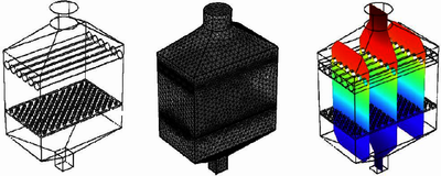 The reduction of NOx emissions in combustion systems like domestic boilers, gas turbine combustors, industrial burners, etc., can be achieved by using lean premixed combustion technologies. One of the major concerns in the operability of such systems is their susceptibility to thermoacoustic instabilities. These instabilities can cause structural vibrations, increased structural wear, low-cycle fatigue, high-cycle fatigue, increased noise emissions, unsteady and inhomogeneous heat fluxes, increased heat loads. If left unattended, such phenomena can lead to damages or failures of the systems. The design and development of new combustion systems, implementing the state-of-the-art technology for lean premixed combustion, shall take into account thermoacoustic considerations since the first conceptual design of the system. Prediction of the thermoacoustic performances of combustion systems is fundamental in assisting the development of such system. Besides the accuracy of the prediction tools adopted, an important element is the flexibility of the tools to take into account design variations in a timely and efficient manner. The present work describes a methodology for the prediction of thermoacoustic instabilities in combustion systems based on an acoustic network model combined with analytical formulations and numerical simulations. Acoustic FEM simulations will be used for the characterization of wave propagation paths. Analytical formulations will be used for the characterization of acoustically active elements (i.e. sources and sinks of acoustic waves). The acoustic FEM simulations consist of simulations in COMSOL Multiphysics® with “Pressure Acoustics, Frequency Domain” physics and “Eigenfrquency” study. The methodology used for the prediction of thermoacoustic instabilities is validated with test cases and applied to a simplified model of a domestic boiler.