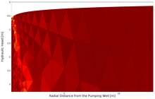 A novel numerical method characterizing groundwater flow in unconfined aquifer is demonstrated. In contrast to the conventional method (Dupuit approach considering horizontal flow only), hydraulic head is simulated in horizontal and vertical directions. The new approach is introduced via developing a 2-D-axisymmetric model representing the vertical cross section of the aquifer. The model solves groundwater flow equation derived from Darcy’s law and the principle of mass conservation. Meanwhile, the dynamics of hydraulic head changes is modeled using arbitrary the Lagrangian-Eulerian (ale) method. In a verification test the numerical results agree well with analytical solution (Thiem equation). An application is presented, evaluating a pumping test conducted at a test site. The limitations and advantages of the model approach are also discussed.