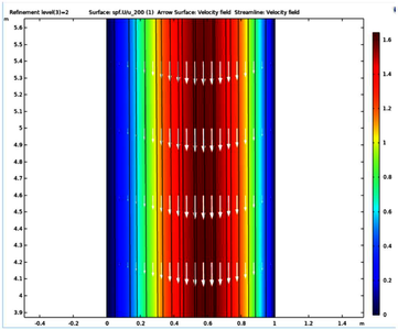 In this work, the CFD and the Heat Transfer modules of COMSOL Multiphysics® were very effective. First, the COMSOL Multiphysics® software was opened then Model Wizard >> 3D >> Fluid Flow >> Nonisothermal flow >> Laminar flow >> General Studies >> Stationary were selected in that order to set-up the problem to be solved. The geometry was built using an inbuilt block function and dimensioned appropriately. Under the materials node, the whole block was selected and set to air. The velocity and the heat flux value for each flow scenario was calculated manually using the Re and Ri (Gr/Re2) numbers.
