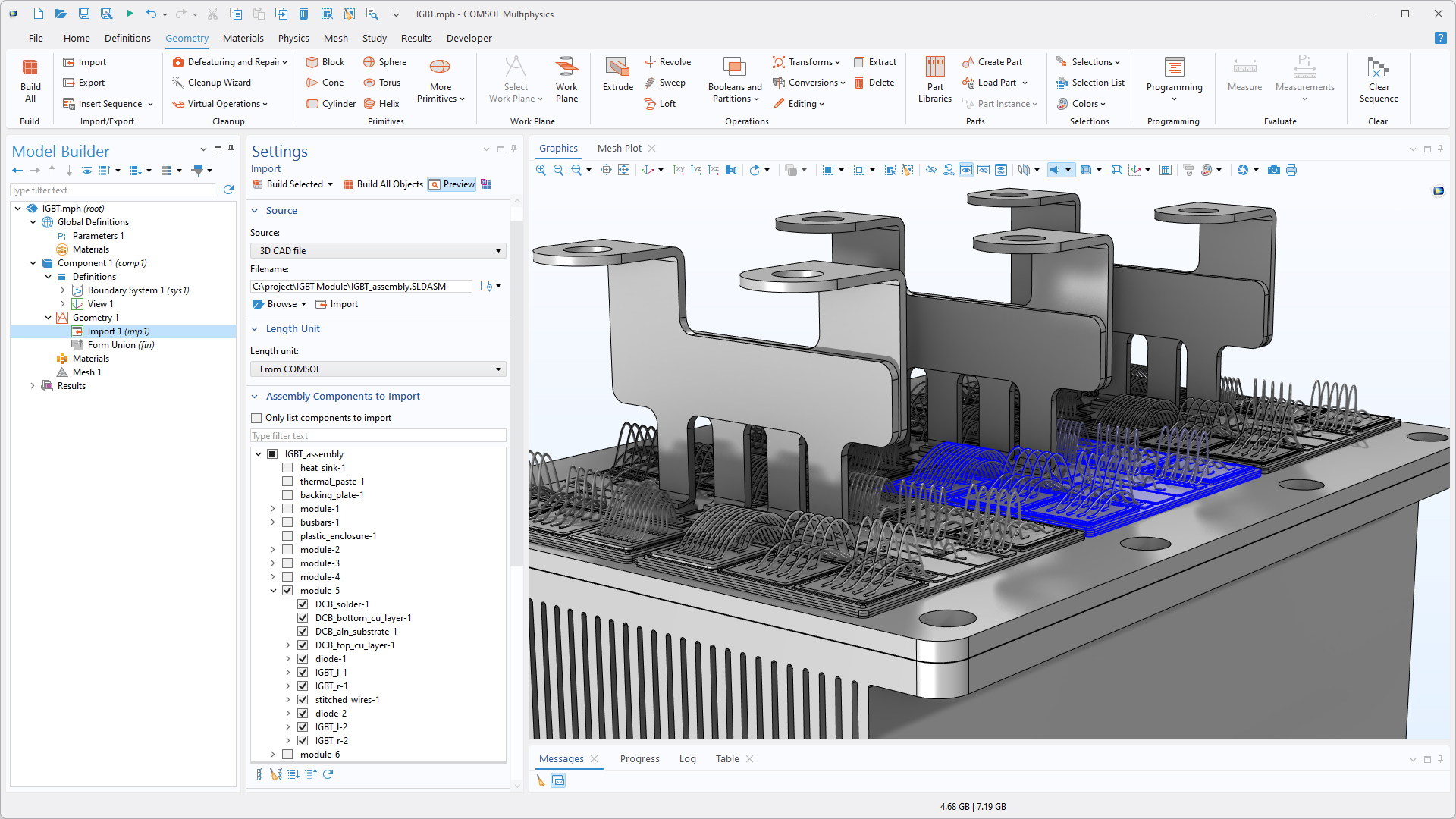 For users of LiveLink™ for SOLIDWORKS®, COMSOL Multiphysics® version 6.4 adds support for the latest CAD file formats and introduces the ability to preview CAD assemblies in the Graphics window. Read more about these updates below.